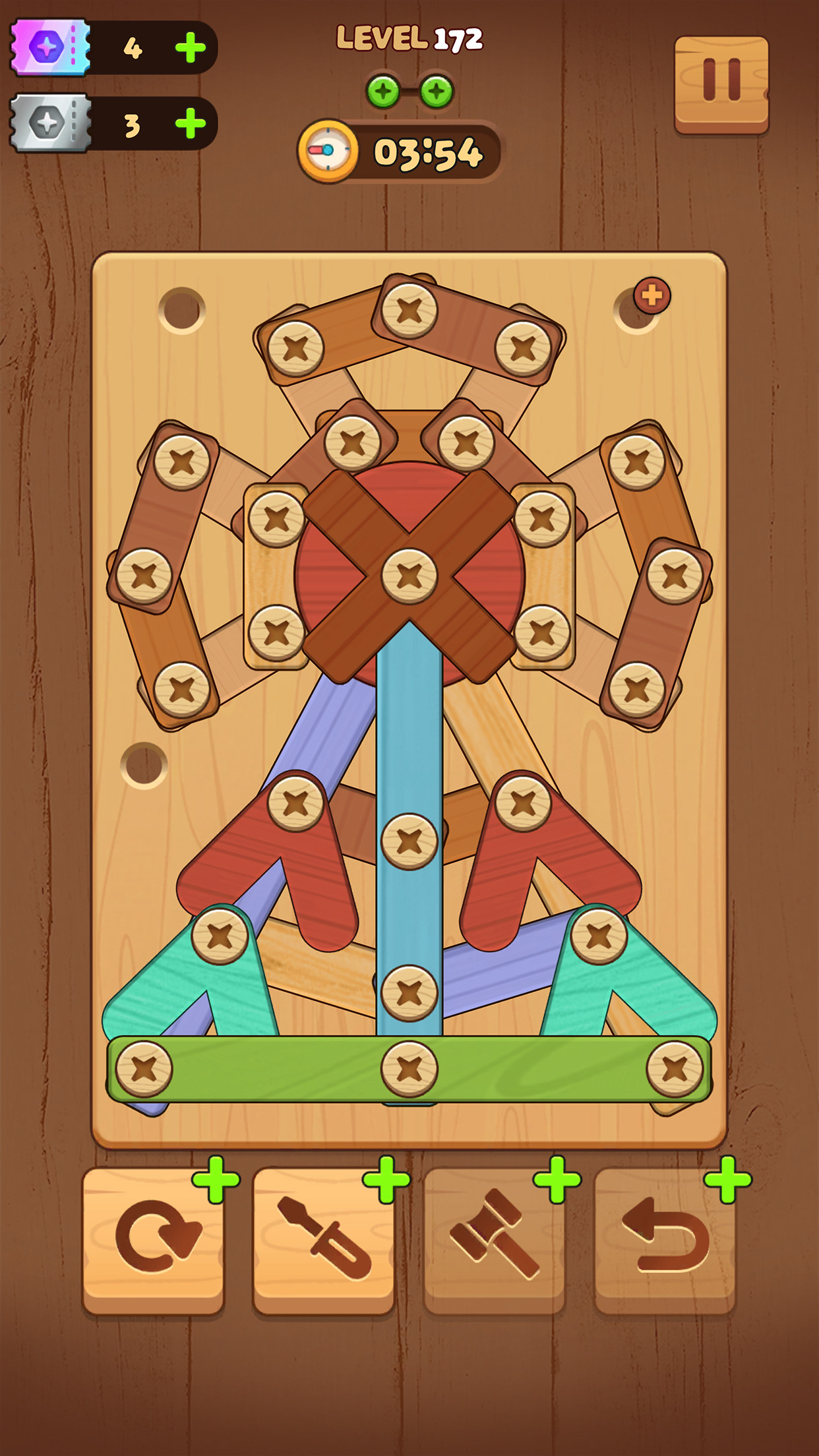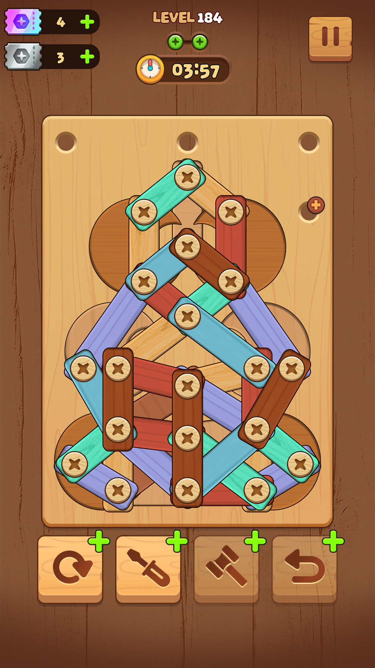 우드 너트 & 볼트 퍼즐을 풀며 숨겨진 답을 찾아내는 재미를 느껴보세요!
